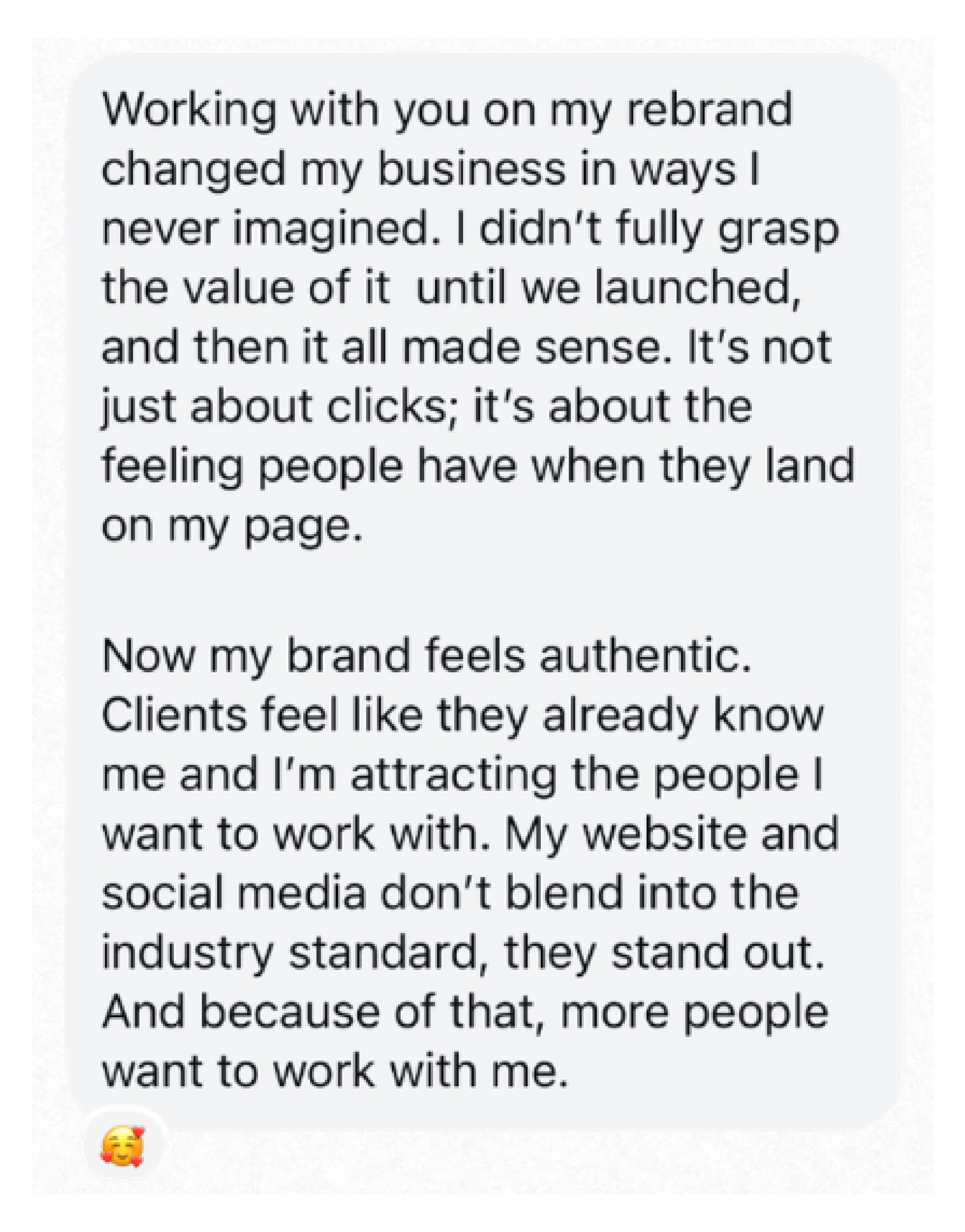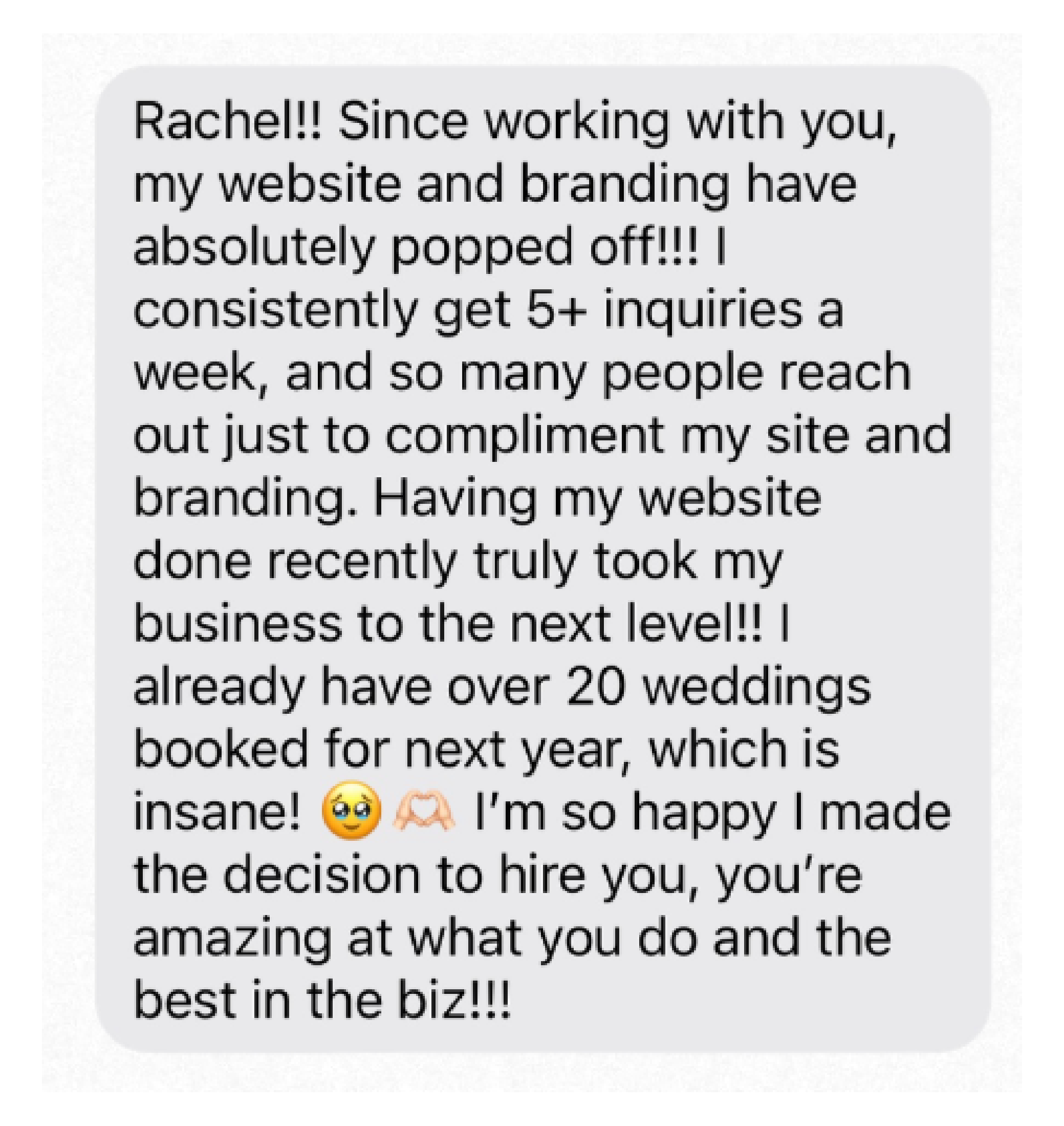 I've helped many people start their businesses, increase their inquiries, sell their services at a higher price point, run ads, gain confidence in their aesthetics, marketing, business ethos, and so much more.
